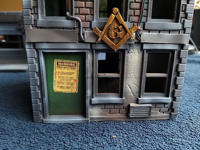 But the major endeavour of this month has been two buildings for my Cyberpunk terrain project. They still have some small touches to do (matt varnish, windows and the till on the store interior still needs to be painted), but for the moment, they're finished enough. Both have accessible interiors and locations where signage can be magnetically attached.